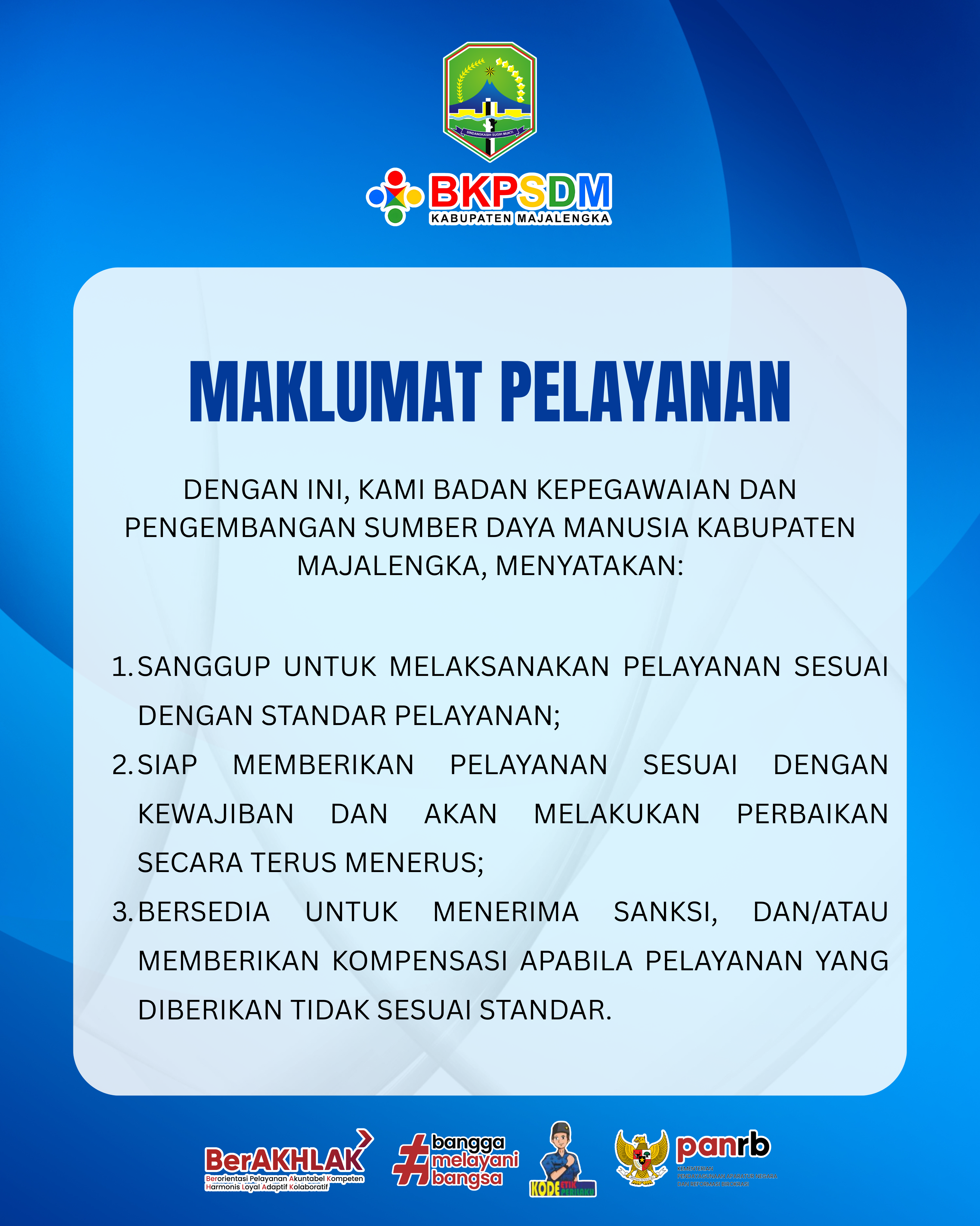 BKPSDM Majalengka berkomitmen memberikan pelayanan kepegawaian yang cepat, transparan, dan akuntabel. Melayani dengan sepenuh hati untuk ASN berkualitas! ????✨