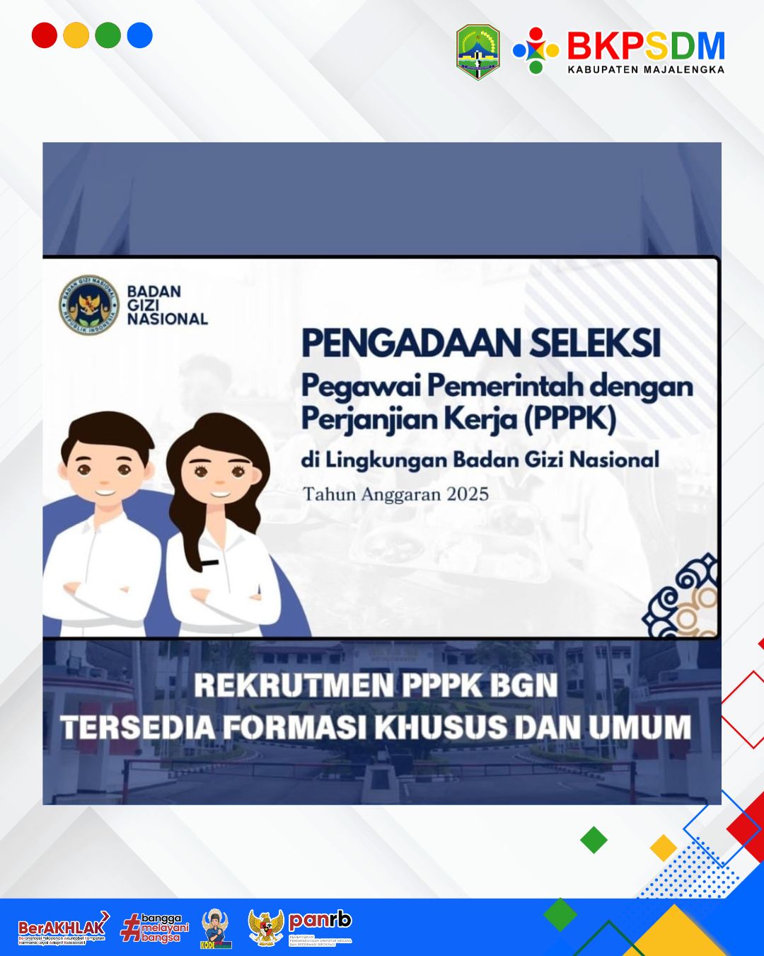 Badan Gizi Nasional (BGN) pada tahun anggaran 2025 membuka seleksi Pegawai Pemerintah dengan Perjanjian Kerja (PPPK). Ini merupakan bagian dari upaya memperkuat kapasitas dan layanan gizi nasional — terutama di unit layanan gizi dan dapur umum, serta penempatan sesuai kebutuhan di berbagai daerah di Indonesia.