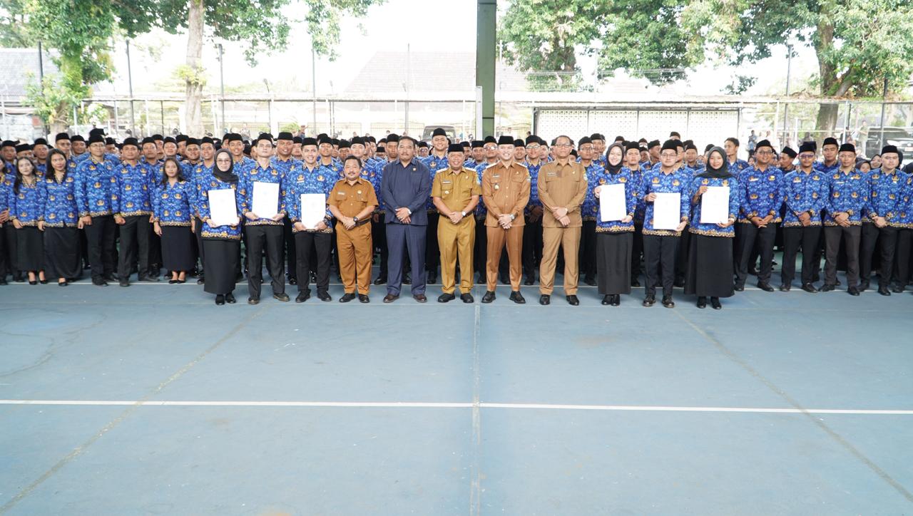 MAJALENGKA – Bertempat di Lapangan Tenis Sekretariat Daerah Kabupaten Majalengka, Selasa (31/03/2026), Bupati Majalengka, Drs. H. Eman Suherman, M.M. resmi melantik dan mengambil sumpah 455 (Empat Ratus Lima Puluh Lima) Calon Pegawai Negeri Sipil (CPNS) menjadi Pegawai Negeri Sipil (PNS). Selain itu, sebanyak 309 PNS juga dikukuhkan ke dalam Jabatan Fungsional formasi tahun 2024.